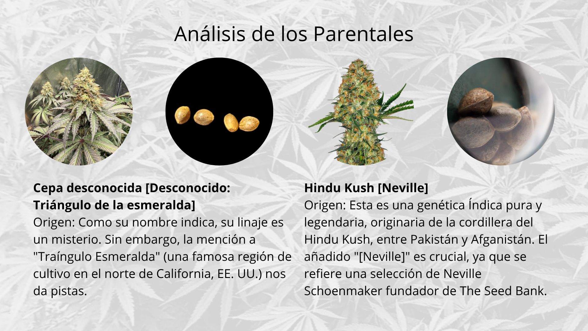 Proporción Genómica: La composición genética general de la descendencia ahora es 75% Neville’s Hindu Kush y 25% Unknown Strain.