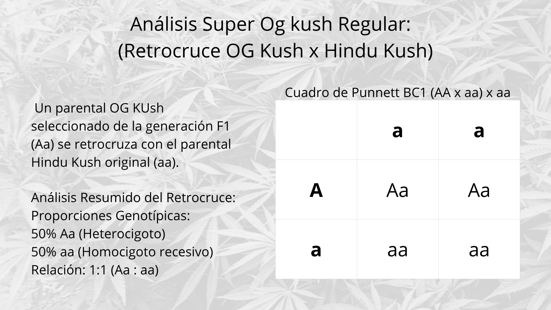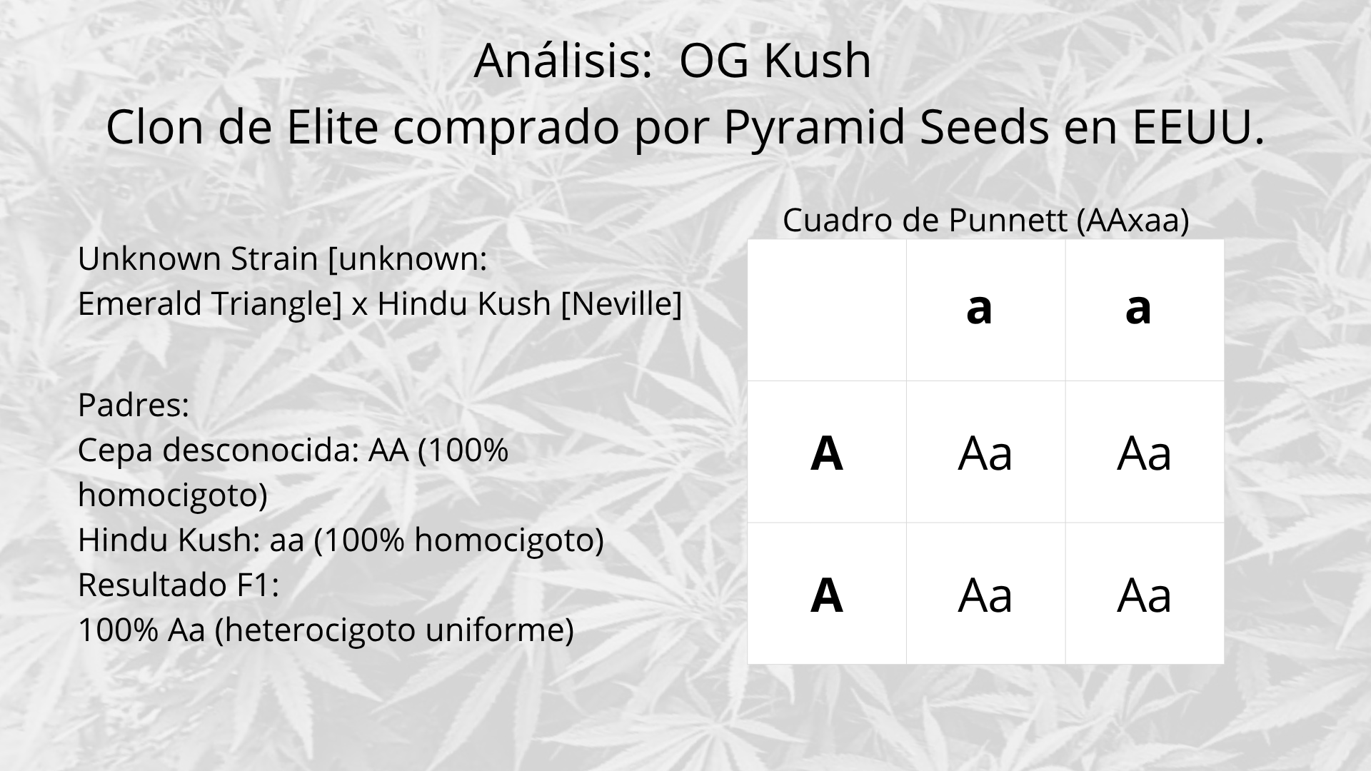 Cruzar Hindú Kush (AAee) × Variedad Élite (aaEE).