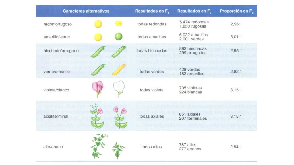 Mendel: Inició sus experimentos con plantas puras de arveja, en las cuales identificó siete características distintas y contrastantes, y notó que al cruzarlas entre sí, solo se manifestó una de las dos características, a las características que se manifestaron en el primer cruce filial F1 les llamo dominantes y a las que no recesivas.